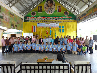 I motesrummet satt nyckelpersoner fran provinsen och jag raknade och fick det till ca. 50 personer som deltog utover vara deltagare. Vid podiet satt guvernoren samt en fran var thailandska sa,arbetspartner (en avdelinge inom Inrikesministeriet som kallas for CDD: Community Development Department).